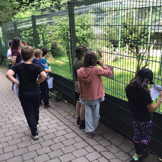 Endlich standen wir vor dem Tor des Parks. Viele von uns gingen erst einmal auf die Toilette oder sprühten sich mit Insektenspray ein. Frau Proksch gab uns ein Tierquiz und dann liefen wir als Gruppe von Tiergehege zu Tiergehege und kreuzten die richtigen (oder auch die falschen) Antworten an.